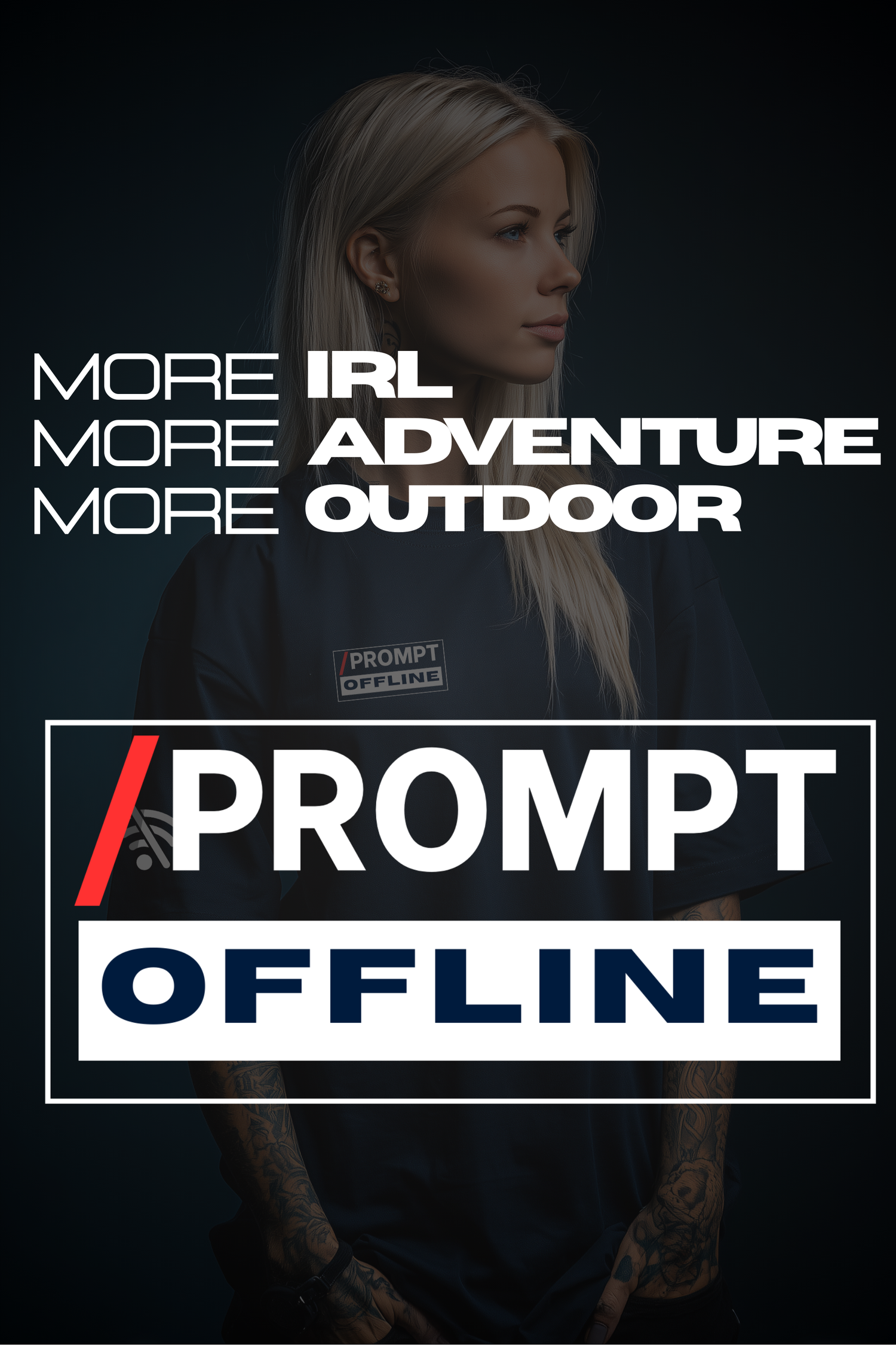 Our /PROMPT collection with its OFFLINE statement emphasizes on that thesis. Inspire others to join you on an IRL adventure with these apparels.