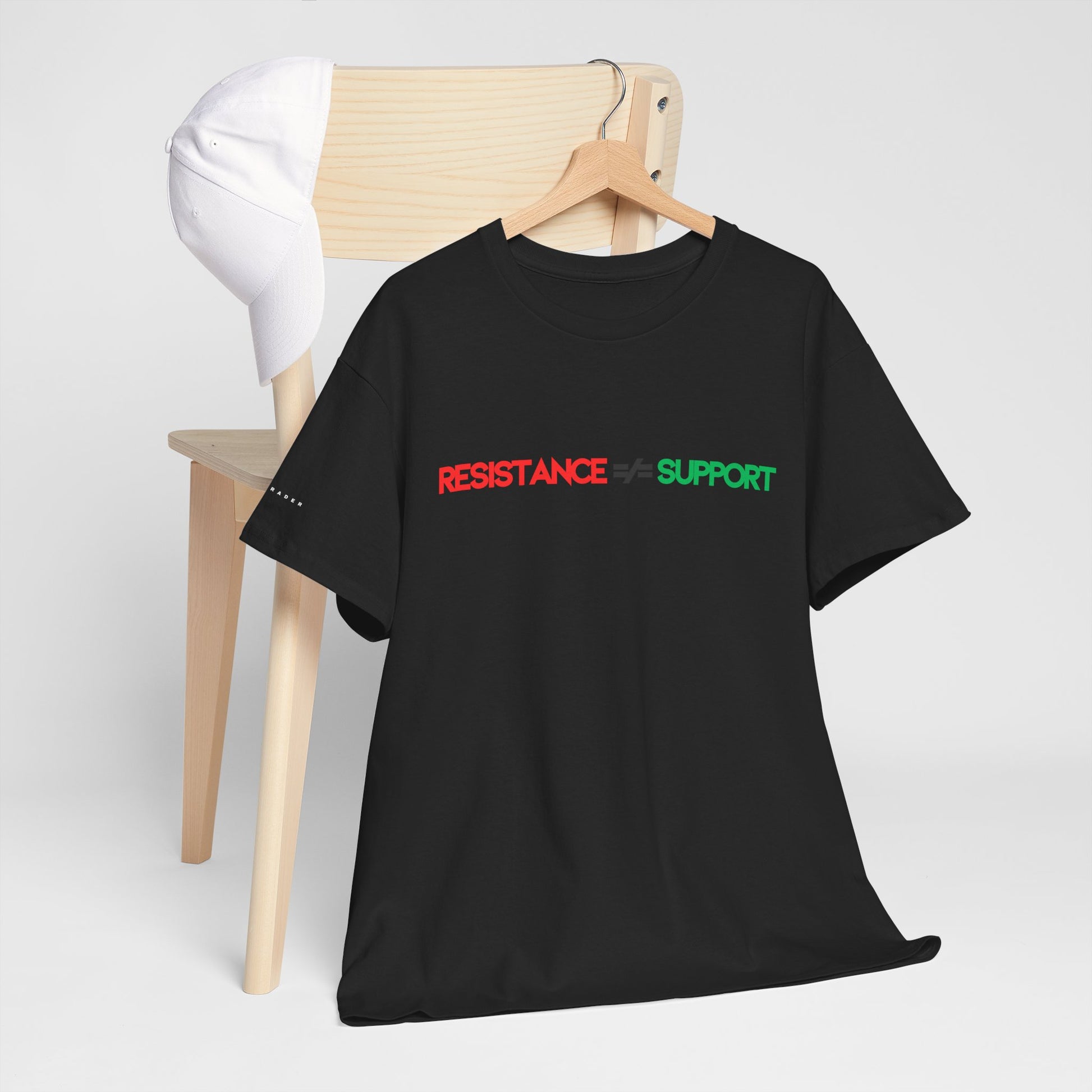 The I.AM.TRADER - Resistance =/= Support Heavy Cotton T-shirt. This versatile tee is perfect for casual outings, lounging at home, or even layering for a stylish look. Its durable, smooth fabric feels great against the skin, making it an ideal choice for daily wear.